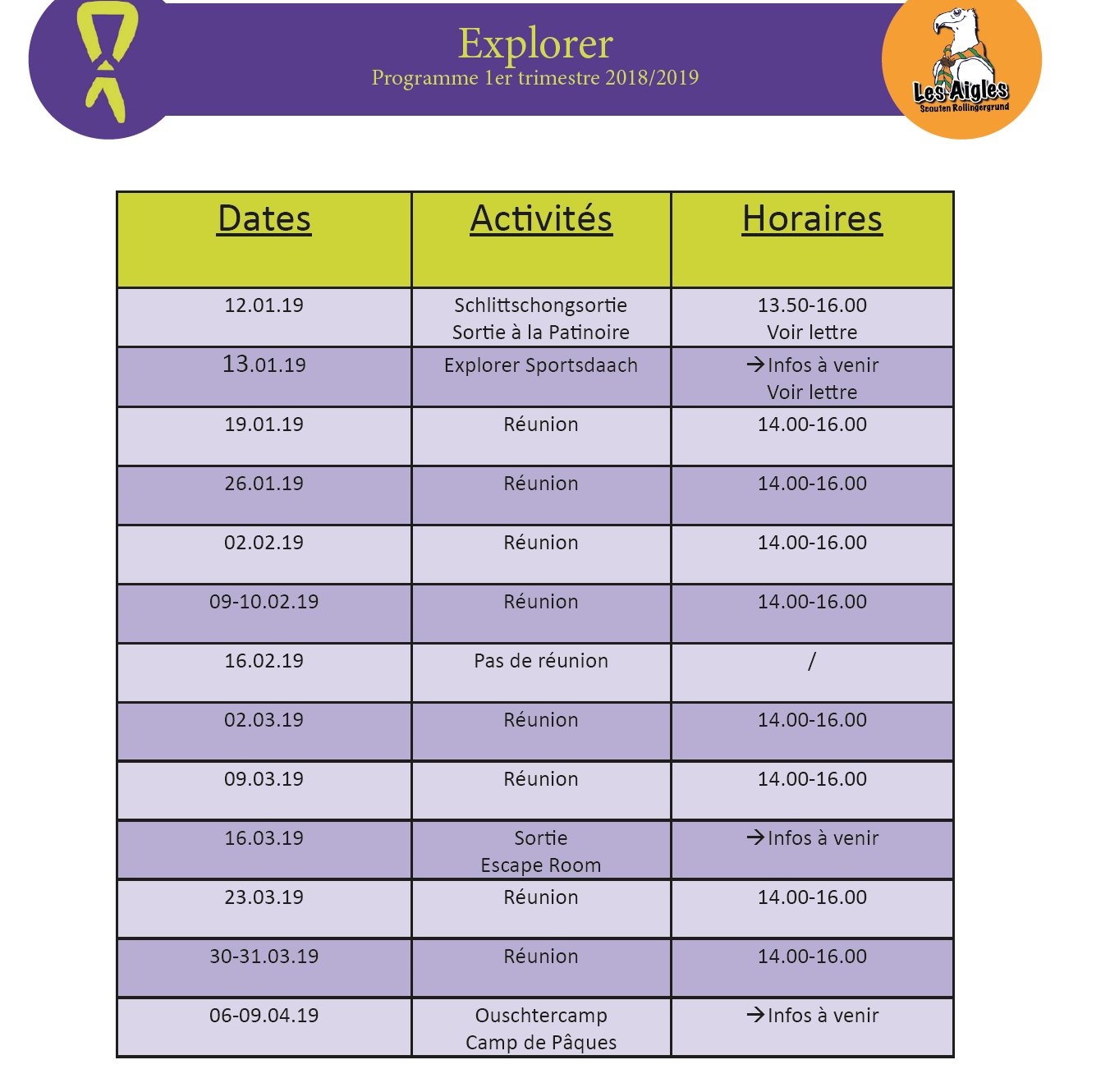 Si wou êtes très motivés d'y participer, vous trouvez plus d'informations en annexe. Très important, n'oubliez pas de remplir la fiche médical.