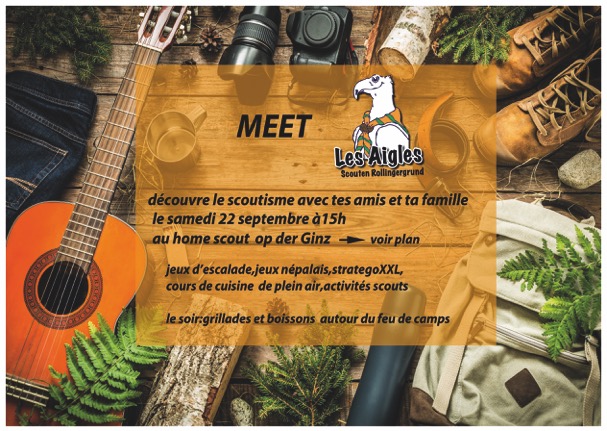 Retrouvez les scouts pour la première réunion de l'année, le 17 septembre à 14:00h dans notre Home Op der Ginz.
