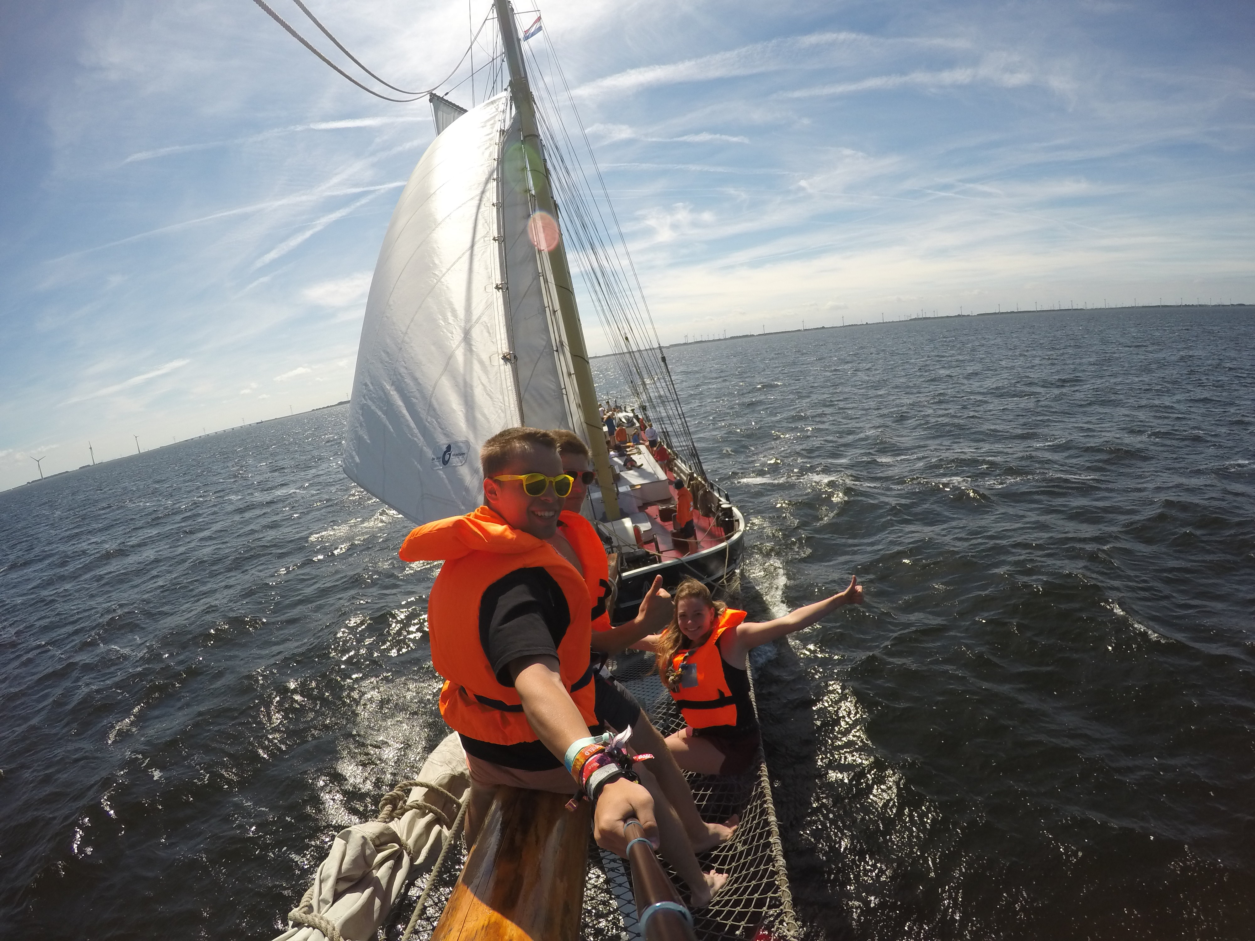 Endlech war et suwait, mir sinn weider ob Amsterdam gefuer. Ob der relativ laanger Rees op Amsterdam haat d’Schawi (Sarah) d’Eier den Maillot Jaune unzehunn. Wei mir dunn Owes no ee puer Stonnen Fahrt ukomm sinn hun mir direkt giess. D’Rover an d’Explorer sinn dun an Foodhallen iessen gaangen. Als Nuetsspill hunn mir dunn ‘Schmuggler’ gespillt. Schmuggler ass wirklech een super flott Scoutsspill well du bass en Gangster an du kriss eng Kaart an op der Kaart steet een vun Objet’en an du muss den op deng Base schmuggelen ouni dass du gefangen gess. Police vum Spill muss versichen Gangsteren doovun oofzehaalen hier Objet’en ze transporteiernen. An esou ass een aneren Daag vum Sail verlaaf.